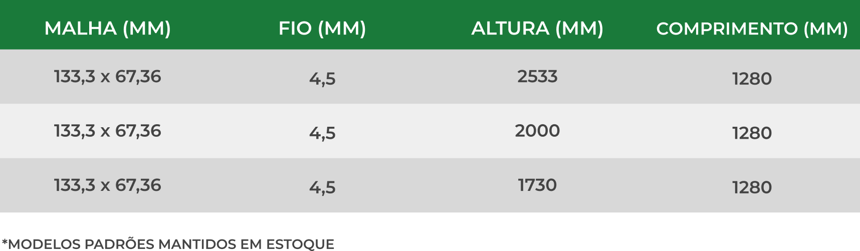 *MODELOS PADRÕES MANTIDOS EM ESTOQUE